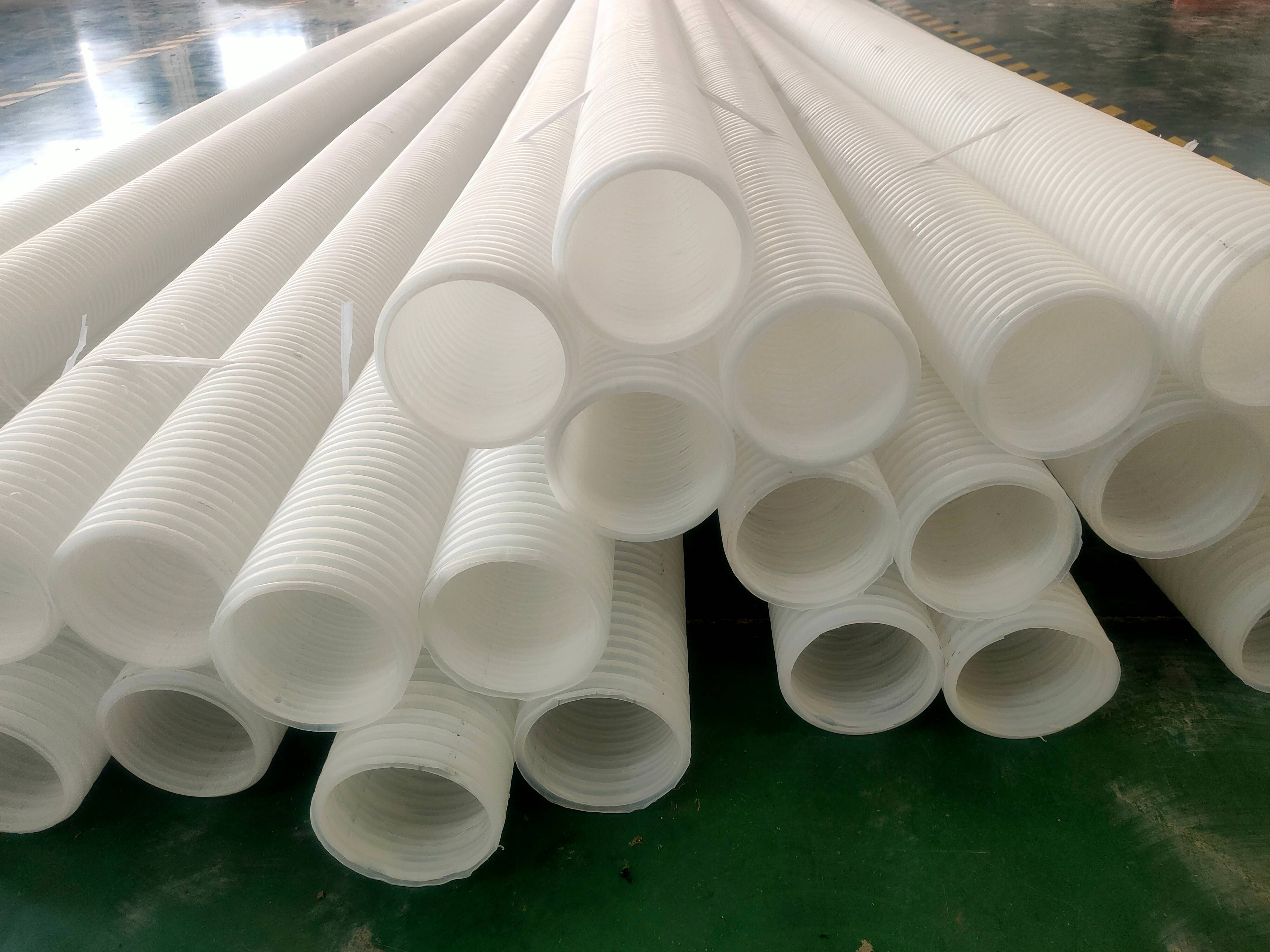 打孔波紋管是由高密度聚乙烯(HDPE)添加其它助劑而形成的外型呈波紋狀的新型滲排水塑料管材,透水波紋管是通過在凹槽處打孔,管外四周外包針刺土工布加工而成。根據波紋管類型可分為單壁透水波紋管和雙壁透水波紋管。由于該產品的管孔在波谷中且為長條形,有效的克服了平面圓孔產品易被堵塞而影響排水效果的弊端,針對不同的排水要求,管孔的大小可為10mm×1mm-30mm×3mm,并且可以在360度、270度、180度、90度等范圍內均勻分布,廣泛用于公路、鐵路路基、地鐵工程、廢棄物填埋場、隧道、綠化帶、運動場及含水量偏高引起的邊坡防護等排水領域,以及農業(yè)、園藝之地下灌溉、排水系統(tǒng)。它與軟式透水管、塑料盲溝已成為我國土木工程建設(滲水、排水)中三大主要產品。